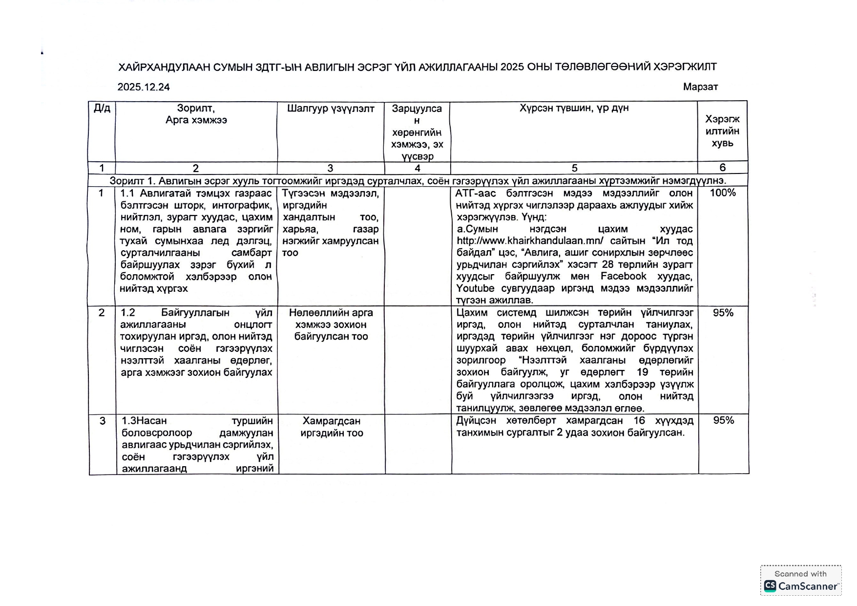 Хайрхандулаан сумын ЗДТГ-ын авлигын эсрэг үйл ажиллагааны 2025 оны төлөвлөгөөний хэрэгжилт